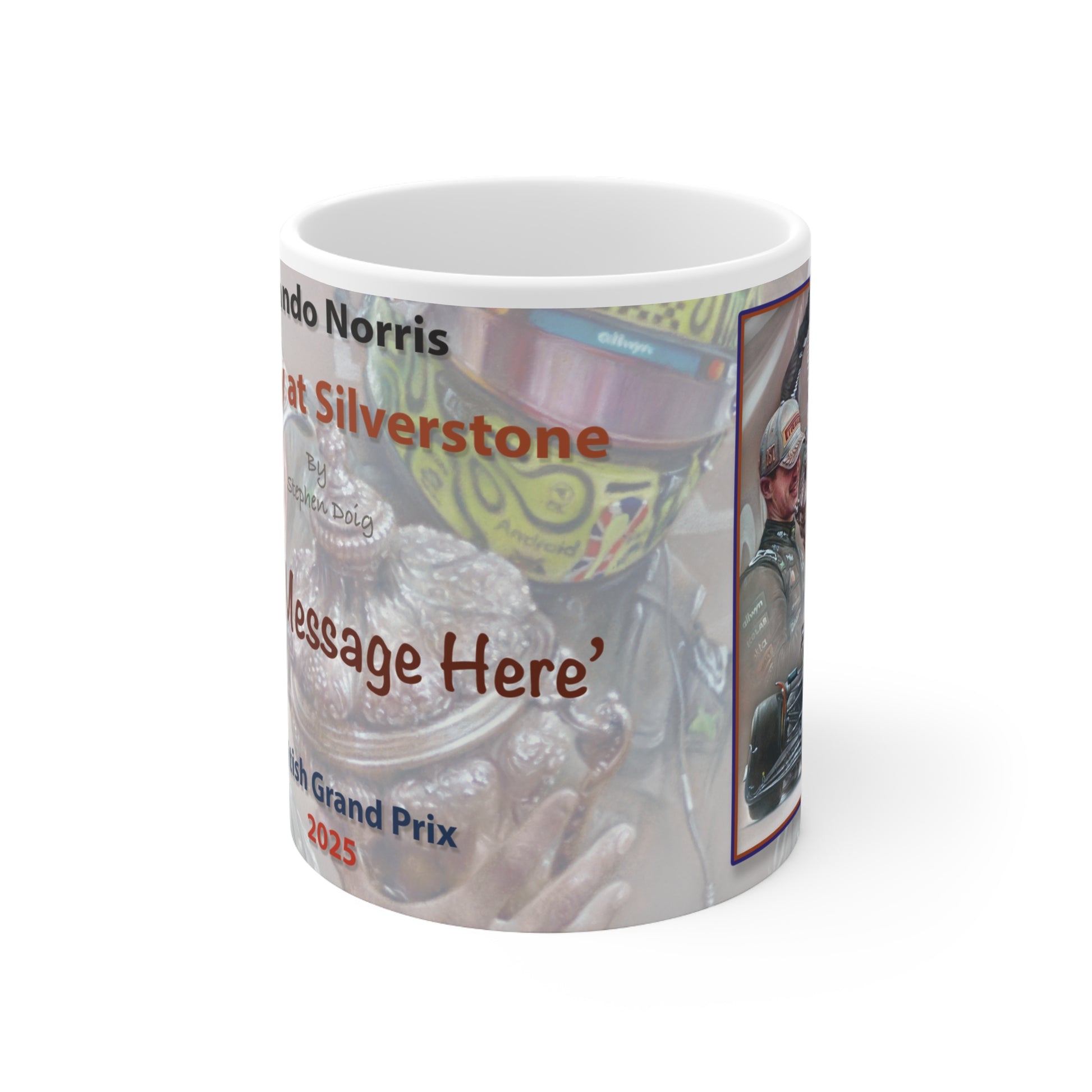 this personalisable 2025 British Grand Prix 11 oz ceramic coffee mug.