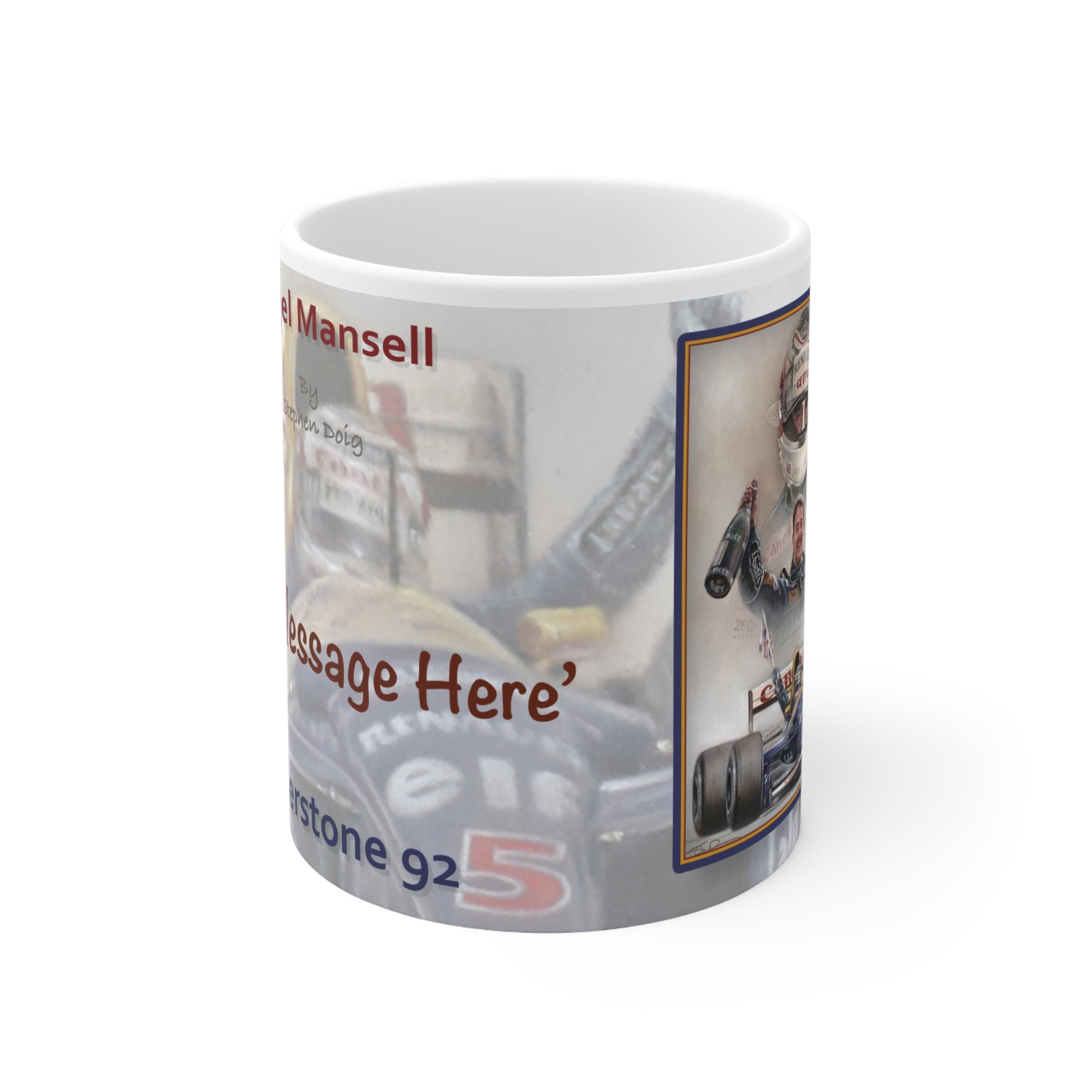 Nigel Mansell Silverstone 1992 Personalisable F1 Celebration Coffee Mug by Stephen Doig