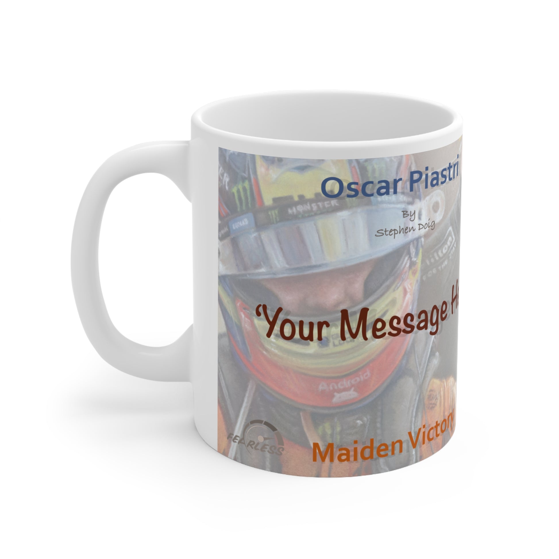 Oscar Piastri Maiden Victory Personalisable Celebration Coffee Mug by Stephen Doig